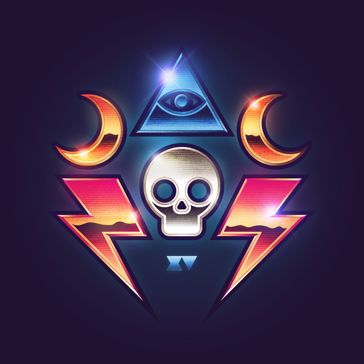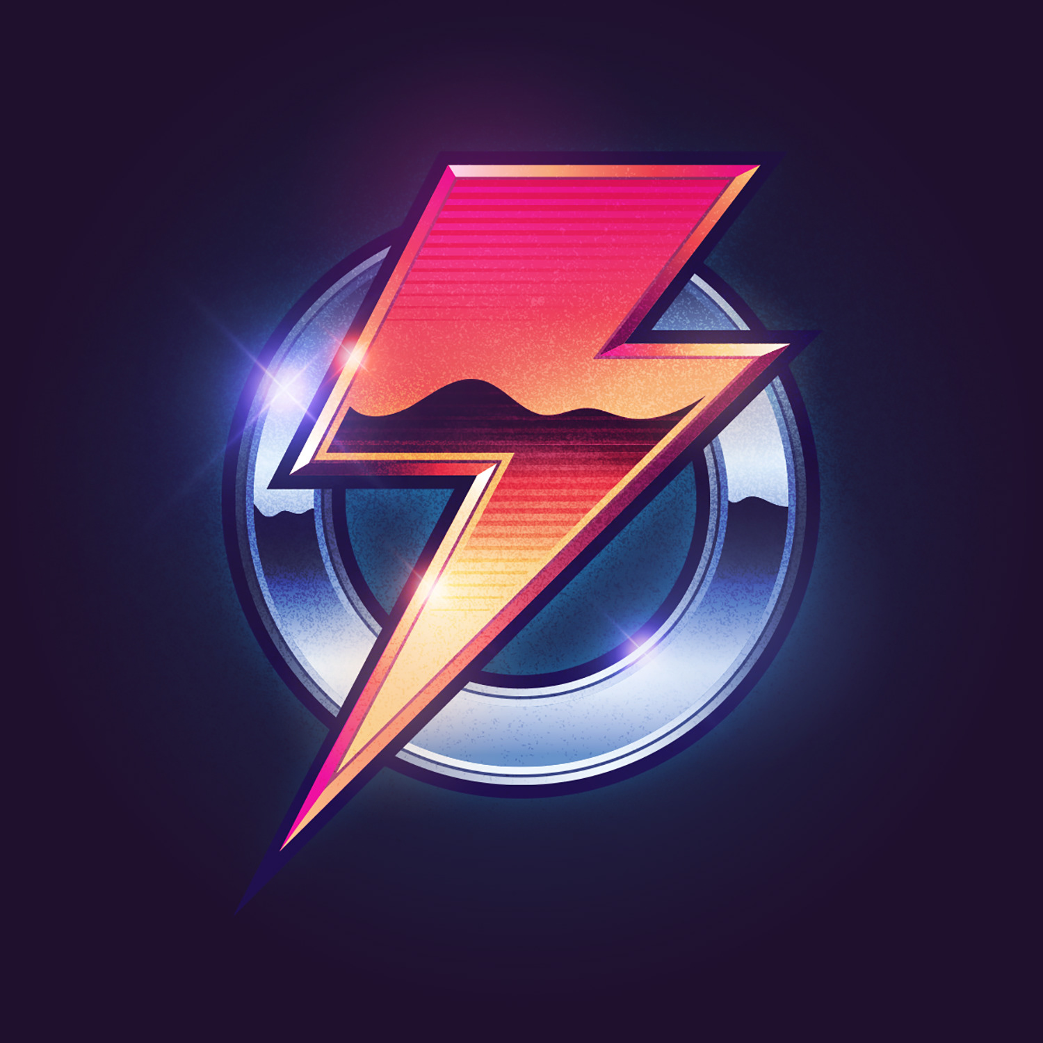 A personal art series exploring rad 80s chrome and lightning effects.