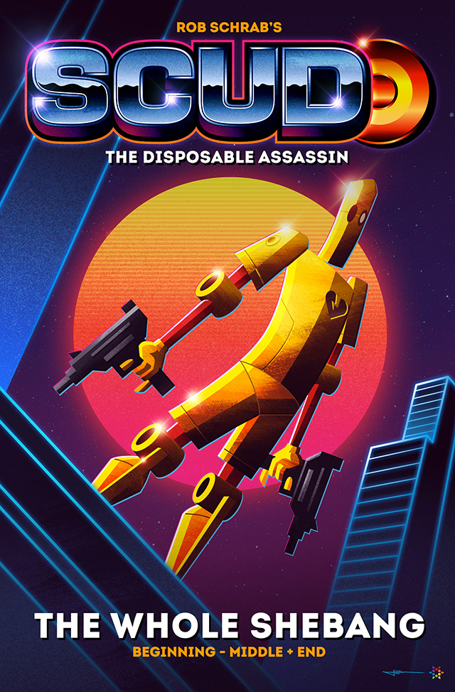 Cover illustrations and logo design for the Scud: The Disposable Assassin collected edition, by Rob Schrab. I was a big fan of Rob's work when I was a teenager, and an avid reader of Scud, so this was a huge thrill to work on.